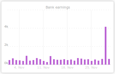 Graph: the earnings per hour if selected date range is Today or Yesterday; the earnings per day if selected date range is This Month or previous Month.
