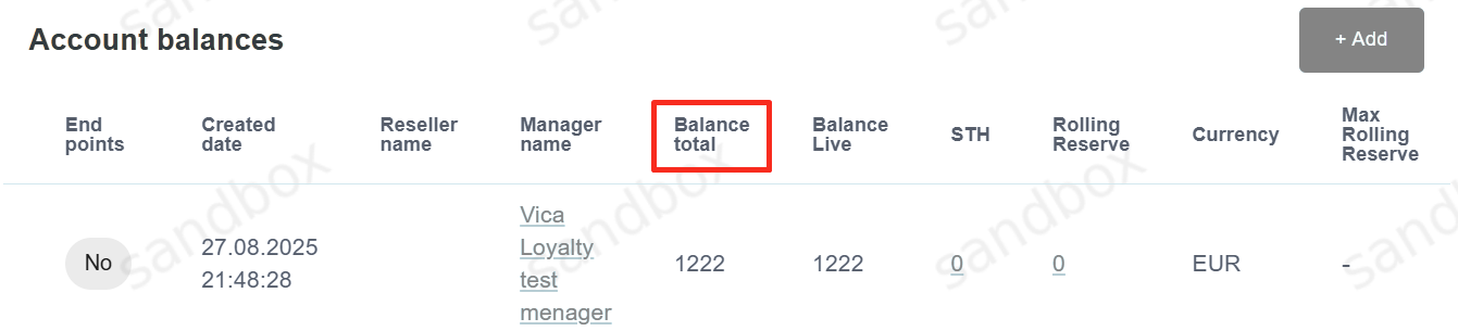 First balance is funded by sale transactions and defunded by payout transactions and is set up for USD currency, also Merchant rates applied for sale transactions. Second balance has override for sale transactions which will deduct balance with amount calculated from manager rate plan.