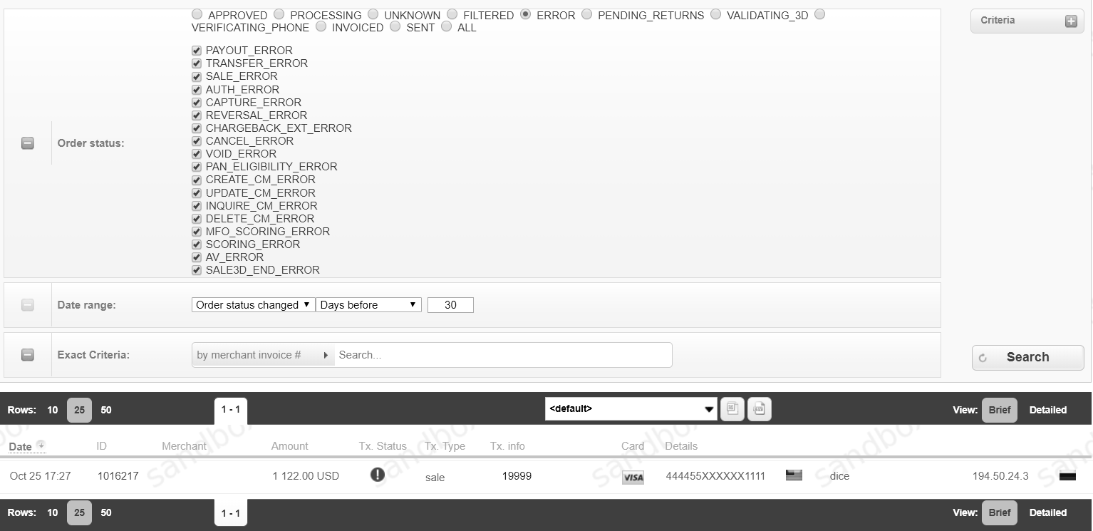 To browse transactions with the selected status, click on the Show button: